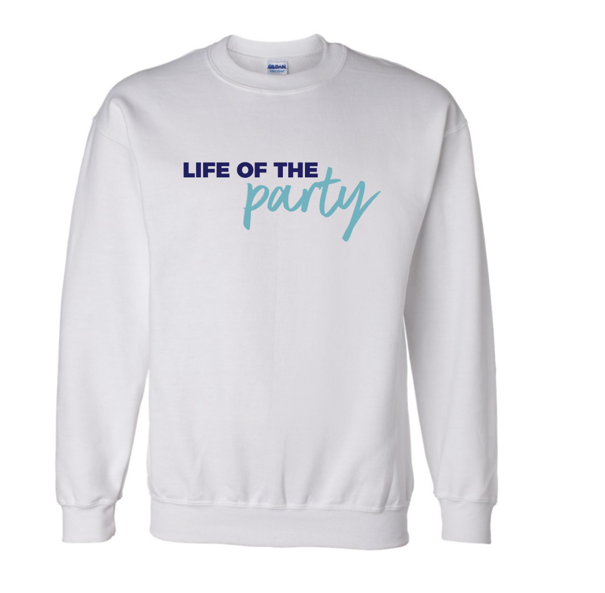 LIFE OF THE PARTY white sweatshirt